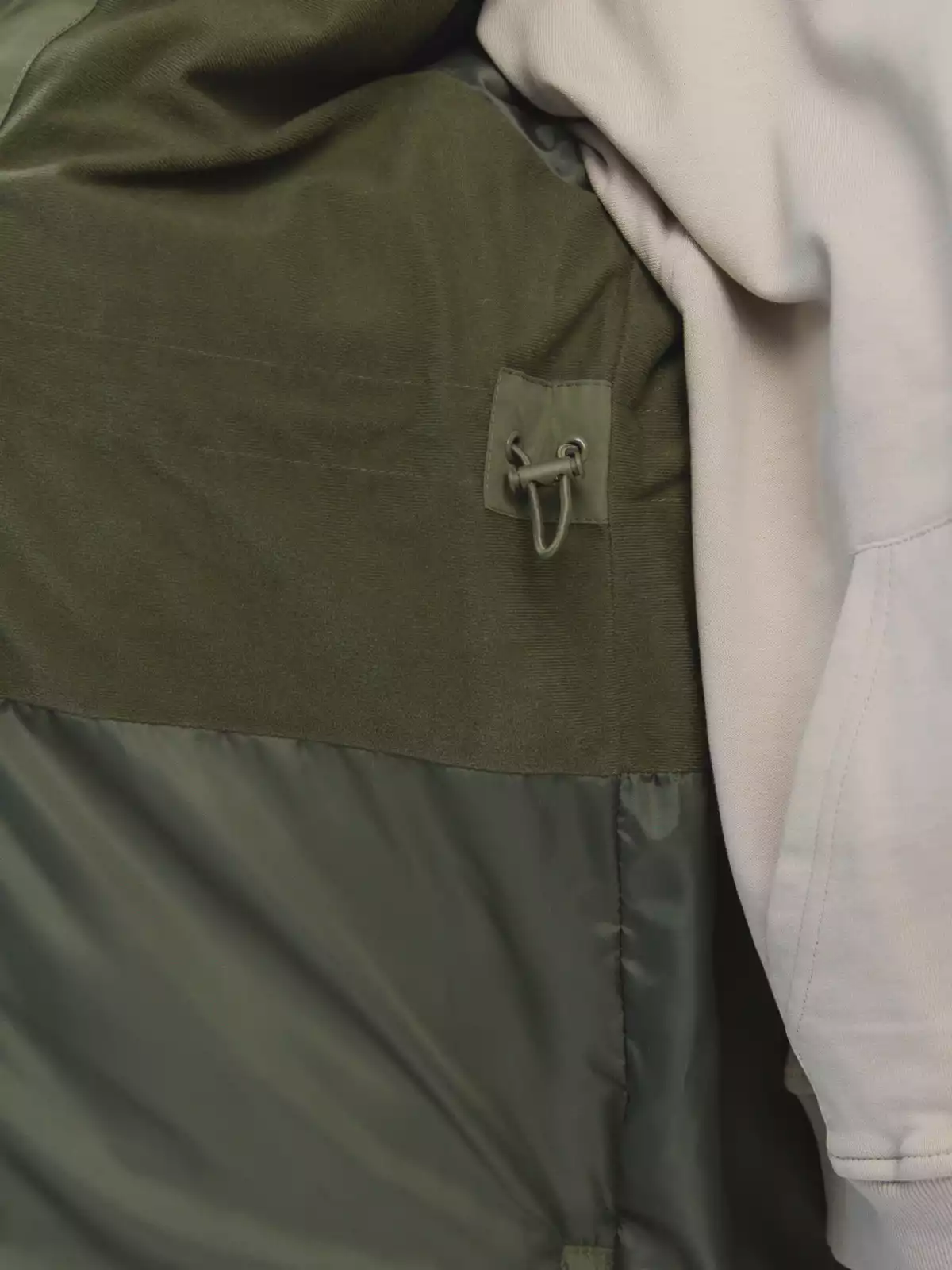 - Подкладка внутренней части рукавов и низа куртки из подкладочной ткани; подклад внутренней части капюшона из ткани верха;