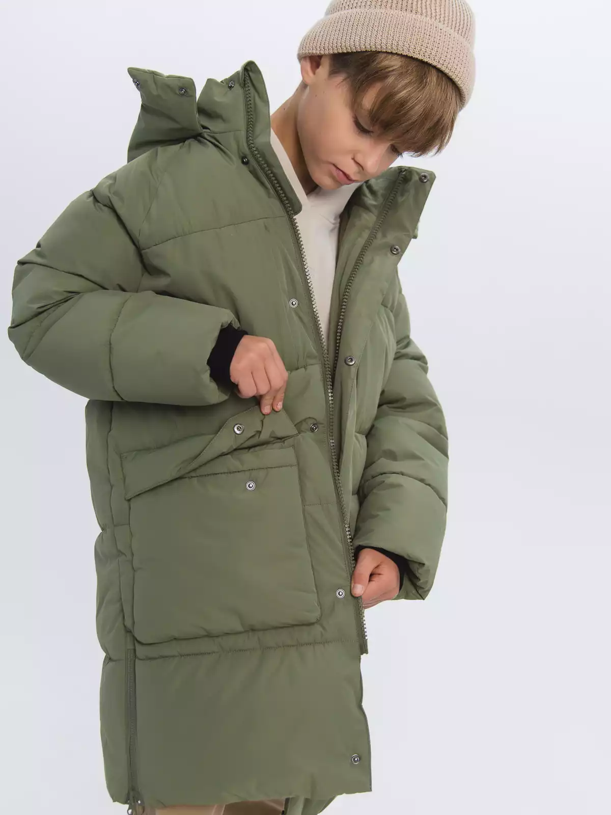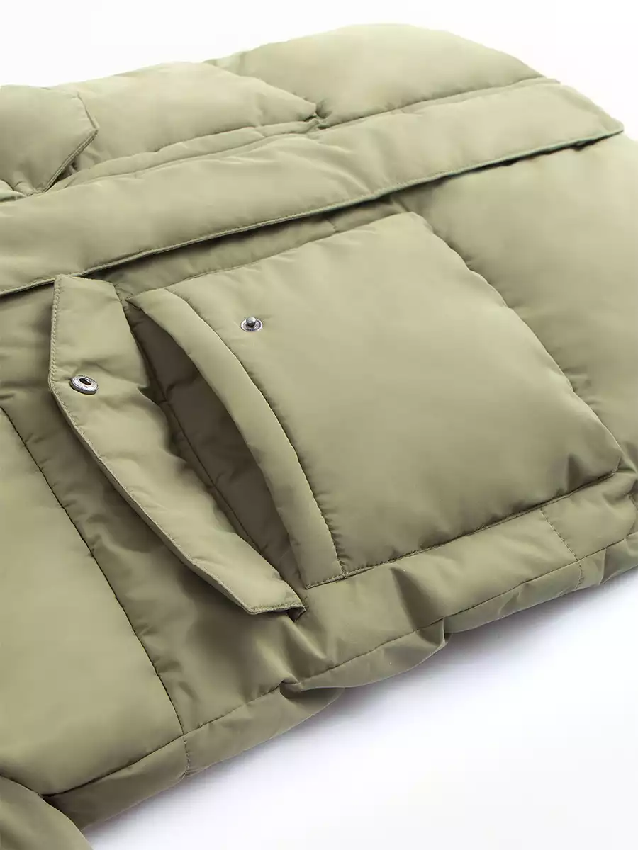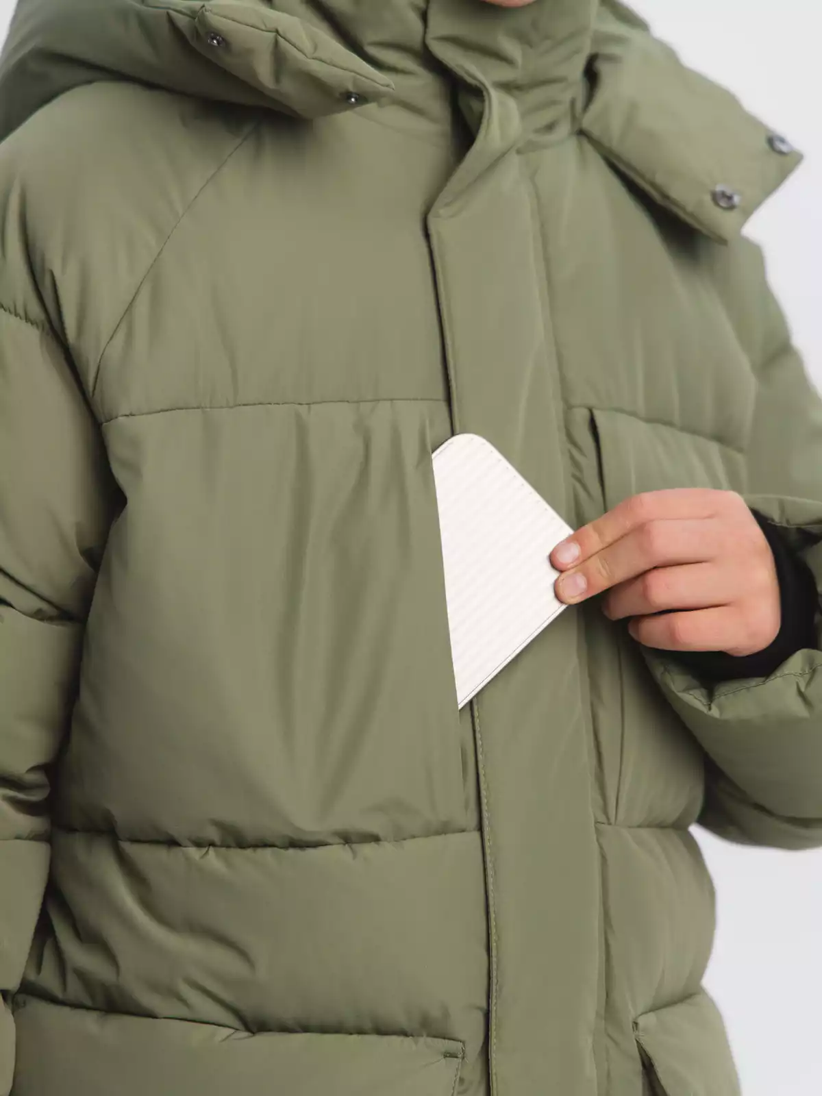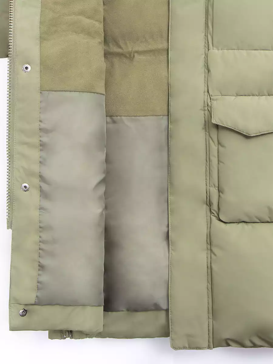 - Внешняя ветрозащитная планка на кнопках вдоль центральной молнии;