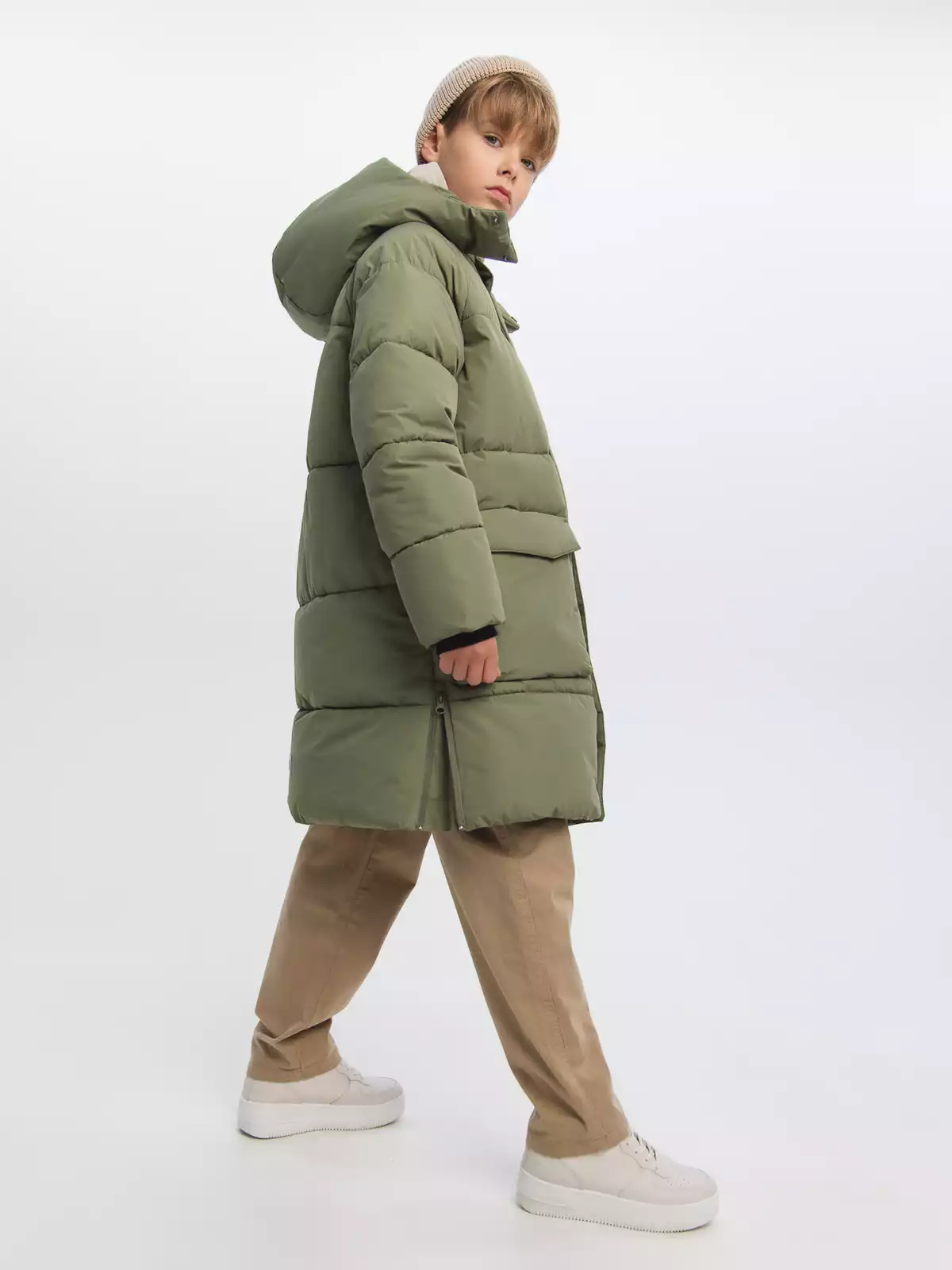 - В боковых швах по низу выполнены разрезы, застёгивающиеся на молнии ;
