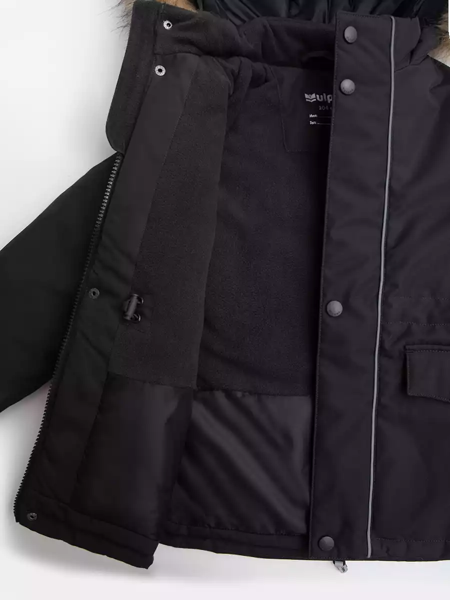 - Съёмная опушка из искусственного меха на молнии с дополнительной фиксацией отворотов меха на кнопки;