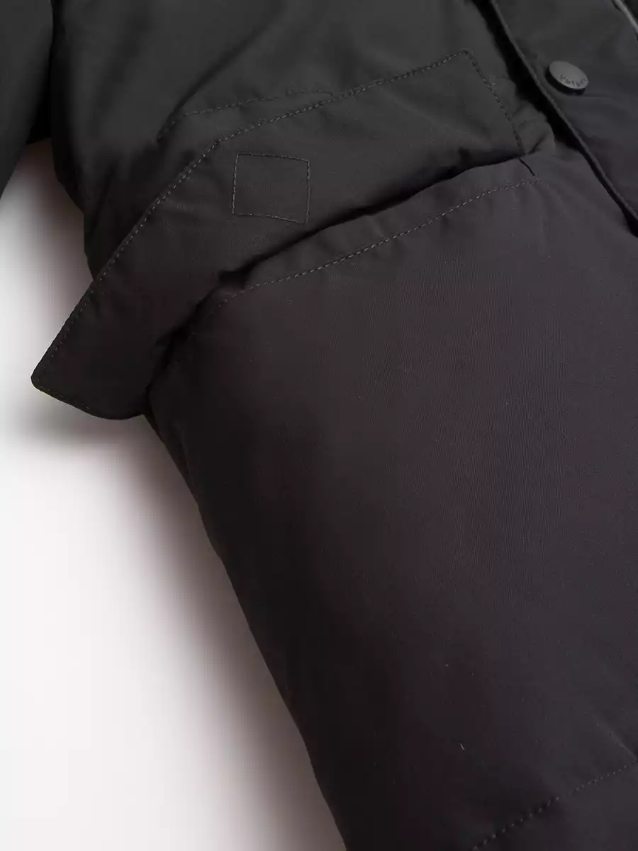 - Внешняя ветрозащитная планка на кнопках вдоль центральной молнии;