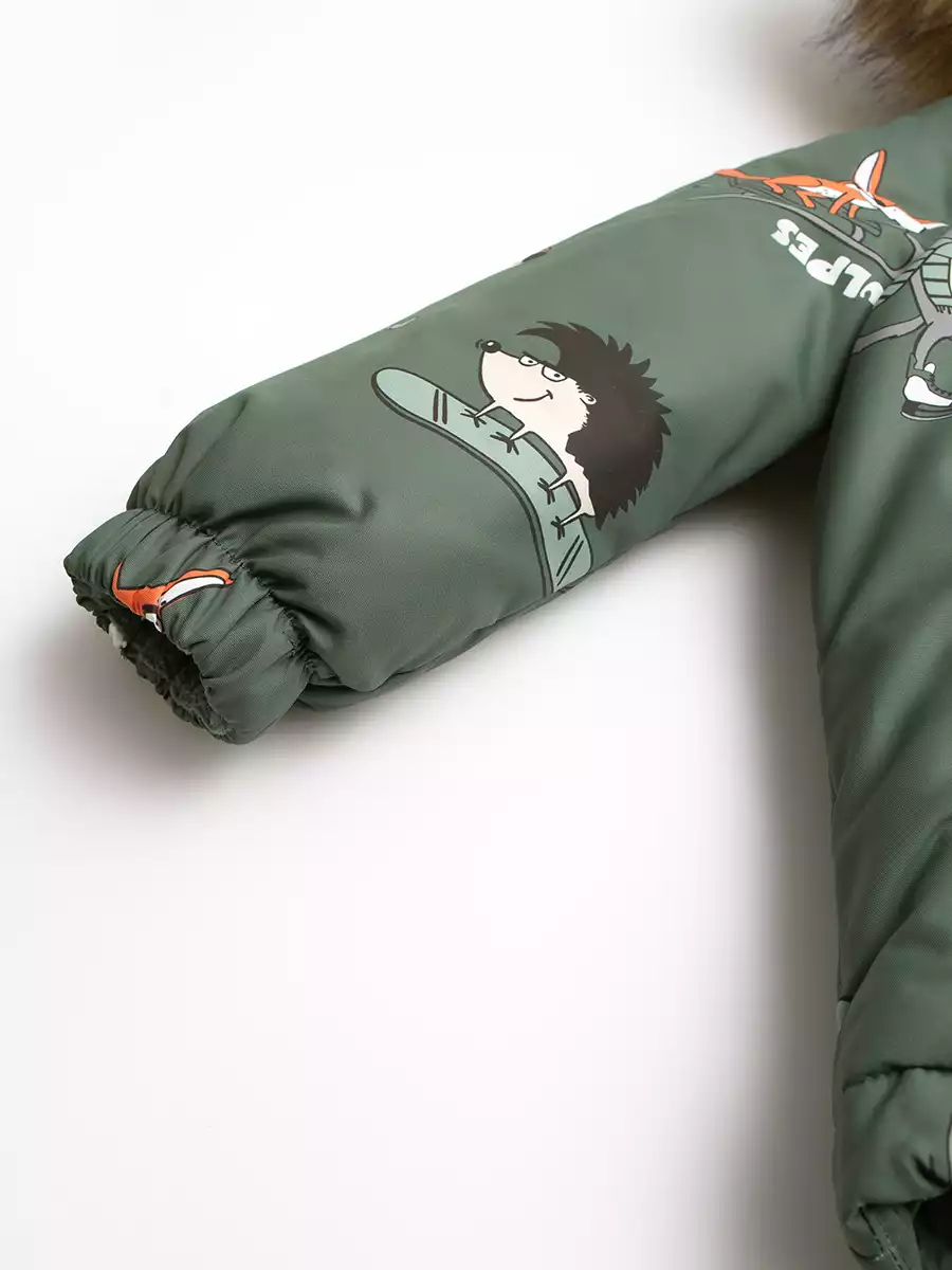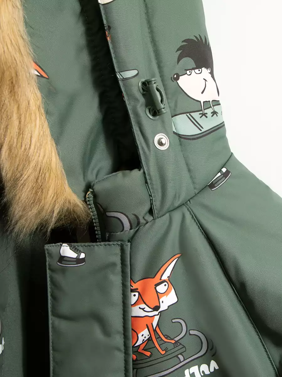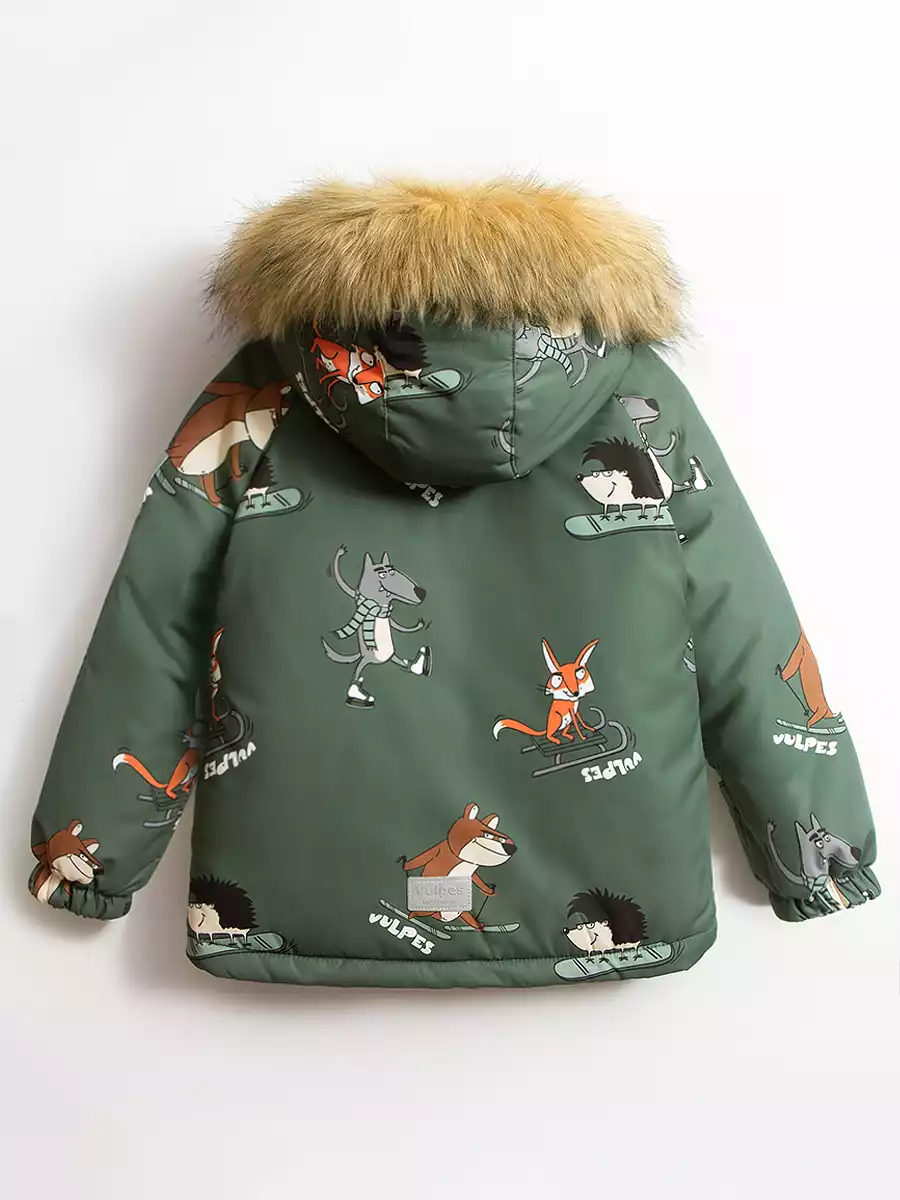 - Съёмная опушка из искусственного меха на молнии, отвороты меха фиксируются на кнопки;