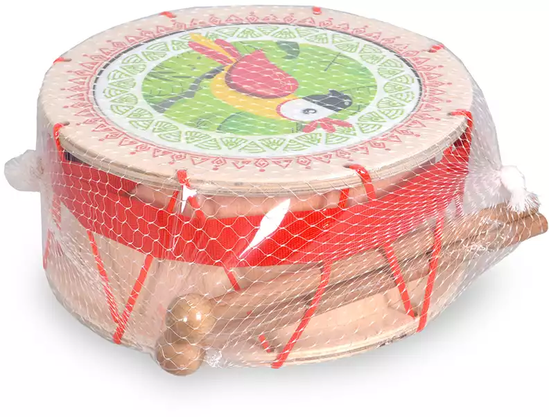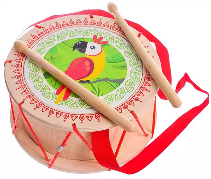 Стилизованный дизайнерский барабан «Попугай» просто создан для того, чтобы дарить детям радость. Барабан изготовлен из дерева и имеет мембрану из экокожи, что создаёт приятное звучание. В комплект входят 2 деревянные палочки, покрытые натуральным льняным маслом; такая обработка придаёт поверхности гладкость и создаёт защитный слой на древесине. Барабан оснащён ремешком. Корпус и мембрана украшены полноцветной стилизованной росписью. Малыш обязательно подружится с милым барабаном «Попугай», который способствует детскому развитию. Игра на барабане создаёт весёлое настроение, а также стимулирует развитие моторики, речи и слухового восприятия, развивает музыкальный слух. Музыка организует и регулирует двигательную сферу детей, что активизирует их познавательную деятельность. Чувство ритма улучшает аналитические способности ребёнка, развивает внимание и творческие способности. Раннее музыкальное обучение играет существенную роль в музыкальном развитии ребёнка, а также способствует развитию координации движений и памяти. Барабан «Попугай» поможет вашему малышу проводить время с пользой и интересом. Все элементы выполнены из качественных материалов, товар сертифицирован в категории «Товары для малышей до 3-х лет» и подходит для игры детям от 1 года. Безопасность, высокое качество и раннее развитие детей является приоритетом при производстве на фабрике игрушек Мега Тойс.