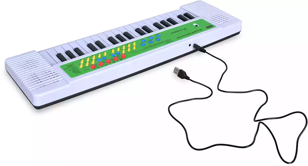 Представляем вам детское пианино-синтезатор Vulpes – настоящий музыкальный центр для юных талантов! Синтезатор представлен в белом дизайне, корпус из прочного пластика. Этот замечательный инструмент с 37 клавишами откроет мир музыки вашему ребёнку и подарит массу радостных моментов. Управление синтезатором интуитивно понятное. С его помощью ваш ребёнок сможет освоить 8 ритмов (вальс, самба, блюз, слоу рок, рок, поп-музыка, диско, марш), 8 тонов (гитара, муз. шкатулка, колокольчик, пианино, орган, скрипка, труба, мандолина). 4 варианта ударных, звуки животных и 5 демо композиций добавят в музыку динамики и драйва. Представьте, как ребенок с гордостью поет в микрофон, который входит в комплект, исполняя свои первые песни, а синтезатор сопровождает его мелодичными аккордами. Функция записи и воспроизведения позволит запечатлеть первые музыкальные шедевры и прослушать их снова и снова. Звук воспроизводится из одного динамика синтезатора. Регулируйте громкость, темп и добавляйте забавные звуковые эффекты, чтобы сделать музыку еще более увлекательной.
