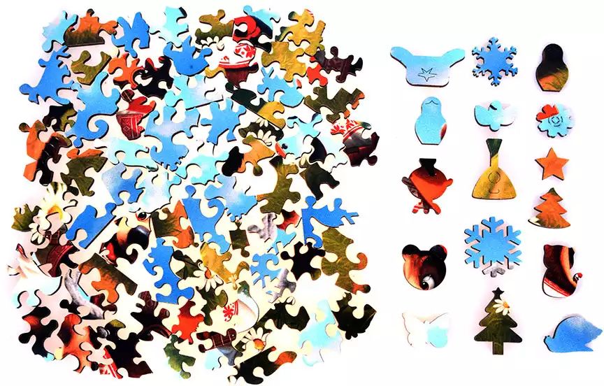 Все элементы головоломки уникальной формы, что делает сборку гораздо интереснее.