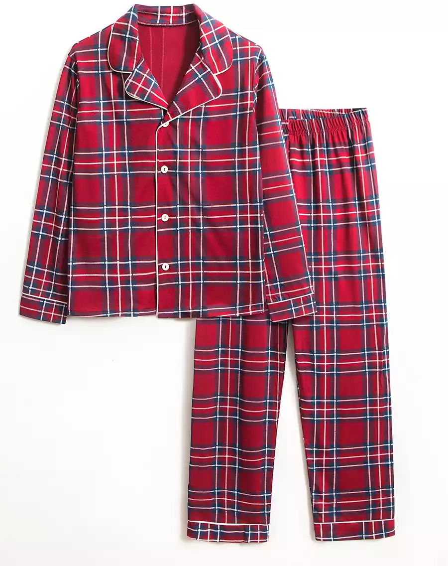 Пижама в клетку идеально подходит для любых случаев. Классический узор в клетку добавит праздничности, а комплект из двух предметов, богатый хлопком, окружит вас невероятным мягким и уютным комфортом. Верх с длинным рукавом имеет застежку на пуговицы, а низ имеет эластичную резинку в талии, что обеспечит идеальную посадку.